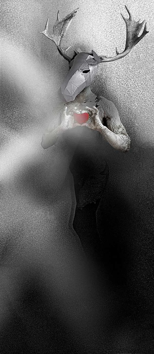 P: Nagyon sokszor előfordult, hogy felkértek egy kiállításra és mindig előjött a probléma, hogy a szobor ugye egy térbeli alkotás, a kiállítása is térben történik. A falakra mindig valaki más fotói, grafikái kerülnek, a két művészeti ág pedig gyakran nem passzolt egymással. Sokkal egyszerűbb, ha a koncepciót egy agy találja ki. Így most felhasználva a fotós és grafikus képességeimet olyan képeket csinálok, amelyeknek köze van a szobraimhoz. Amikor képet csinálok, először létrejön az installáció, ami egy hosszú folyamat, a bevilágítása és maga a fotó készítése már gyorsabb. Utána jön a képfeldolgozás, ami nálam egy nagyon hosszú folyamat.